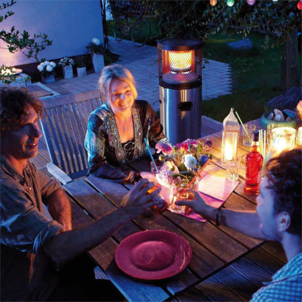 - Terrassenheizer mit standfestem Gehäuse aus gebürstetem Edelstahl